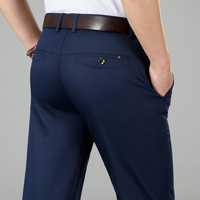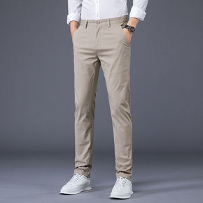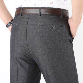 2021春夏高端中老年男士商务休闲裤男式纯色百搭长...