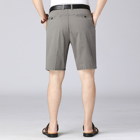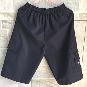 夏季男士休闲裤中老年七分裤爸爸工装短裤纯色棉类宽松...
