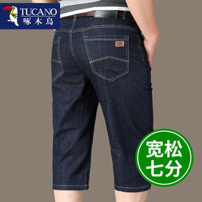 冰丝七分牛仔短裤男夏季薄款中年宽松外穿爸爸中裤7分...