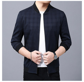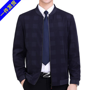 秋季中年男装外套爸爸装棒球领男士夹克外套薄款春秋格...