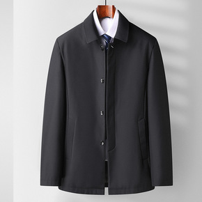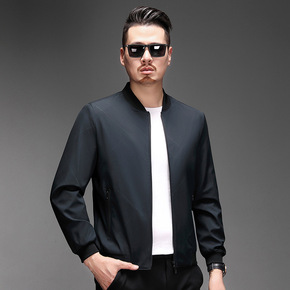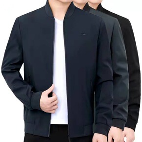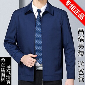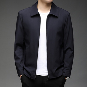 2022春季夹克男式翻领商务休闲纯色中年爸爸薄款茄...