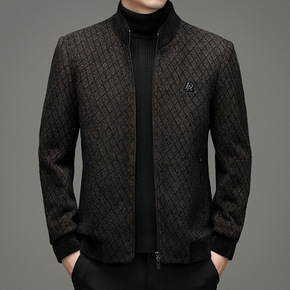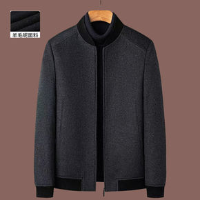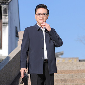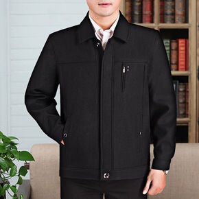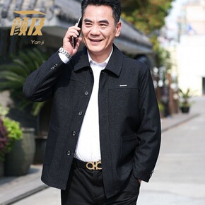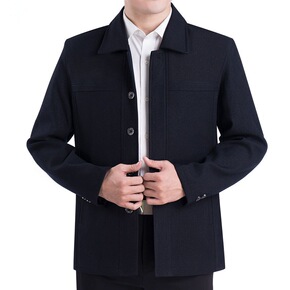爸爸毛呢外套春秋装高档夹克外套中年男士40岁50中...