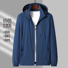户外运动夹克男薄款透气速干弹力宽松中老年男装春秋季...
