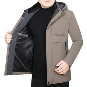 2021秋冬季新款加厚中年男士可脱卸帽休闲外套爸爸...