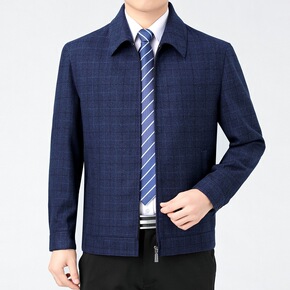2022年春秋中厚砂洗中老年男士夹克外套爸爸装宽松...