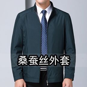 高档品牌男装花公子桑蚕丝夹克春秋中年爸爸装单排扣中...