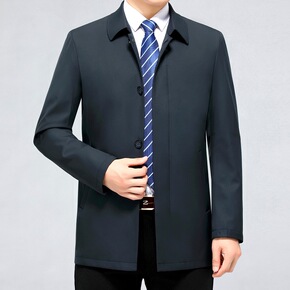 春秋季风衣男中长款商务休闲中年男士夹克外套爸爸装春...