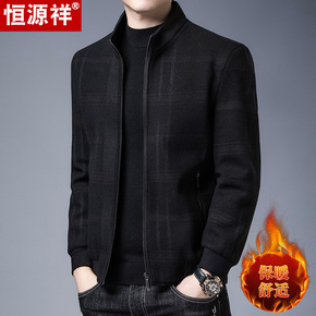 恒源祥夹克男士立领冬季夹棉男装中老年保暖茄克衫爸爸...