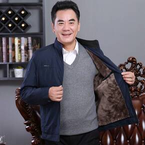 中老年男装外套秋冬季爸爸加绒加厚冬装男士夹克中年老...