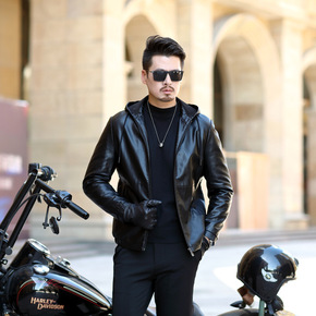中年皮衣男休闲连帽夹克新款机车加绒加厚外套潮爸爸男...