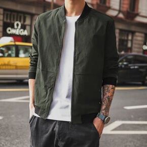 秋季夹克男条纹短款棒球领外套2022新款商务休闲潮...