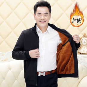 中老年棉衣男 中老年夹克男 加绒男士外套 爸爸装宽...