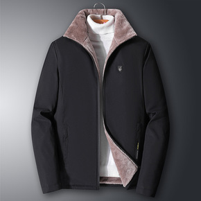 加厚毛绒内胆保暖大码爸爸男装秋冬装外套棉服棉袄中老...