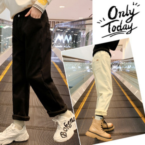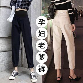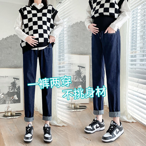 孕妇牛仔裤春秋款休闲打底加绒加厚老爹裤春秋冬装...