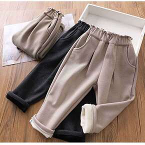 女童补丁牛仔裤休闲老爹裤秋冬加绒加厚洋气长裤保暖冬...