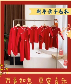 新年装亲子装毛衣冬装母女母子家庭装加厚红色洋气连衣...