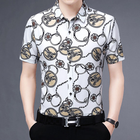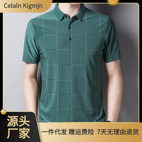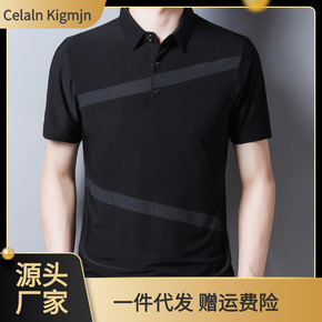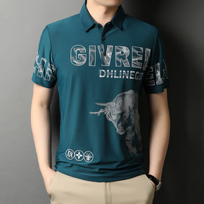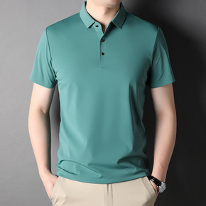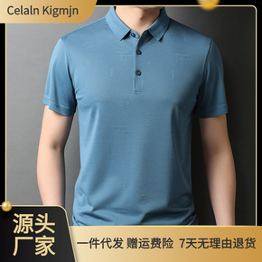 抖音男装新款桑蚕丝短袖t恤夏季polo衫翻领爸爸装...