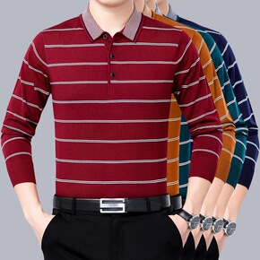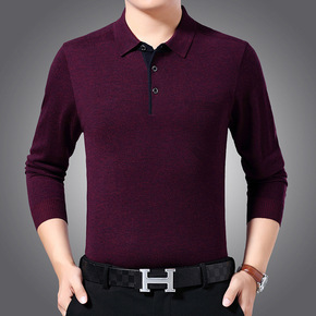 春秋新款针织打底羊毛衫衫男翻领纯色毛衫爸爸装套头薄...