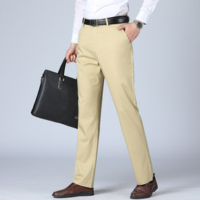 冰丝亚麻西裤男中年2022夏季薄款高腰直筒爸爸裤免...