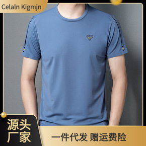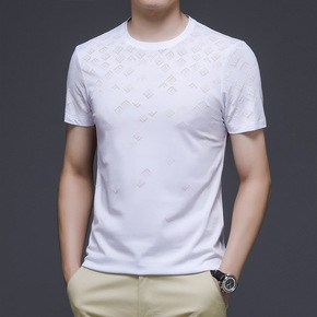 2022夏季短袖t恤男桑蚕丝圆领中青年男士体恤修身...