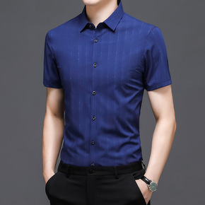 男士夏季短袖无痕T恤中青年爸爸装商务休闲体恤衫翻领...