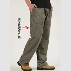 春秋季多口袋中年人工装裤男士宽松大码爸爸装休闲裤纯...