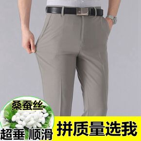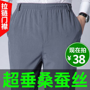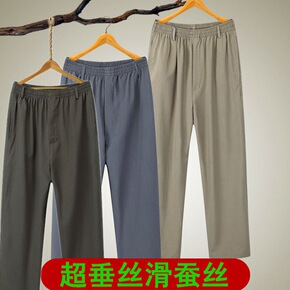 男裤桑蚕丝夏季薄款中老年休闲裤爸爸装高腰宽松真丝松...