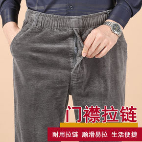 中年男士休闲裤秋冬厚款男条绒裤中老年人宽松男裤灯草...