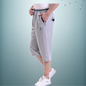 中年七分裤男士宽松大码爸爸装夏季纯棉休闲中裤子中老...