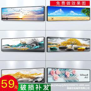 北欧装饰画客厅餐厅横版画现代简约卧室床头画绿植叶子...