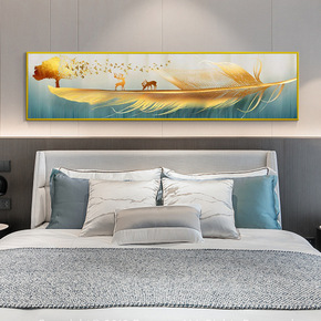 现代简约卧室床头装饰画麋鹿新中式主卧房间背景墙温馨...