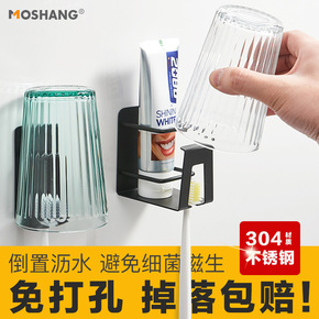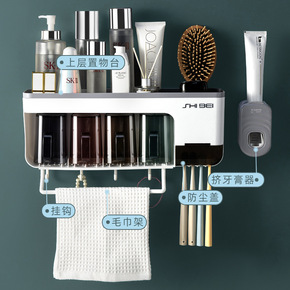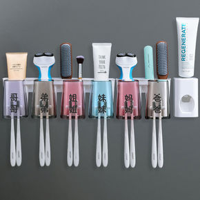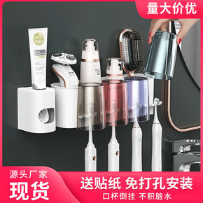 新款创意免打孔漱口刷牙杯壁挂卫生间收纳自动挤牙膏器...