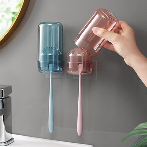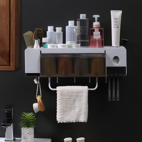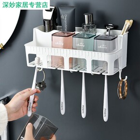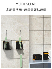 厂家直销多功能牙刷架置物架套装挂壁式带漱口杯免打孔...
