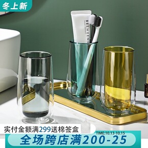 双挤牙刷置物架免打孔漱口刷牙杯套装卫生间收纳牙刷架...