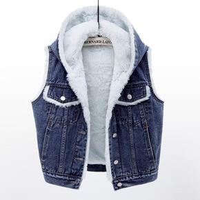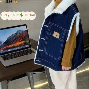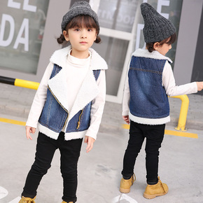 2021童秋冬男童牛仔马甲女童背心宝宝加绒坎肩羊羔...