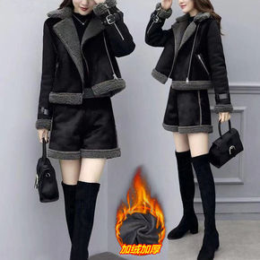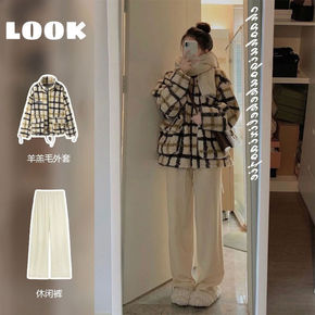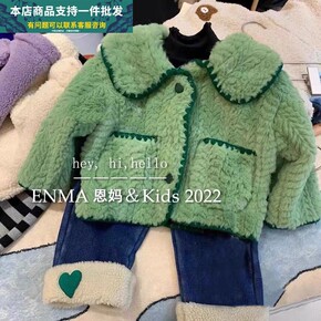 女童秋冬新款两件套2022韩版新款羊羔绒翻领加厚外...