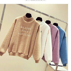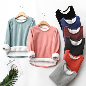 高中学生秋装新款大童少女初中生纯色内搭上衣羊羔毛外...