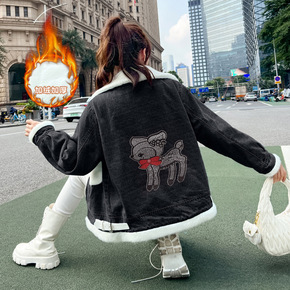 2022冬季新款羊羔毛牛仔外套女网红炸街加绒加厚韩...