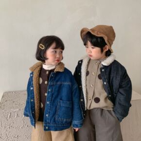 韩国童装秋冬儿童牛仔外套加羊羔绒女童两面穿男童加厚...