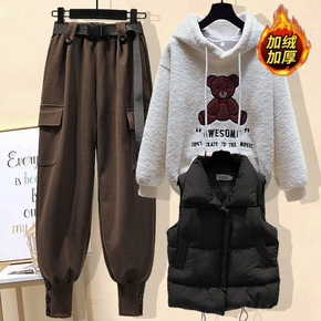 2021冬新款韩版男女童羊羔绒马甲双层加厚连帽卫衣...