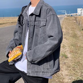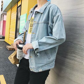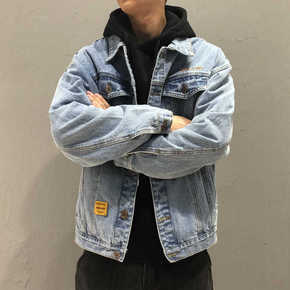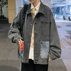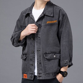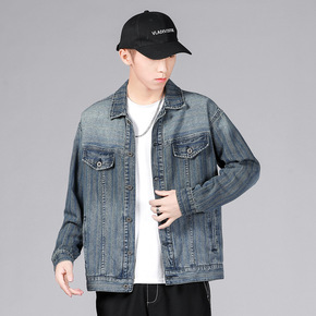春秋季宽松休闲牛仔外套男士牛仔衣男装衣服韩版潮流工...
