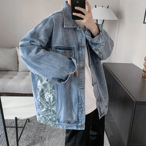 腰果花牛仔外套男宽松百搭工装外穿春秋季痞帅夹克上衣...