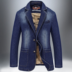 9758 定制春季新款男士休闲牛仔夹克修身小西装外...