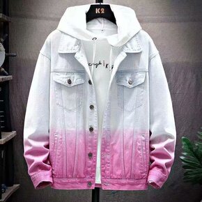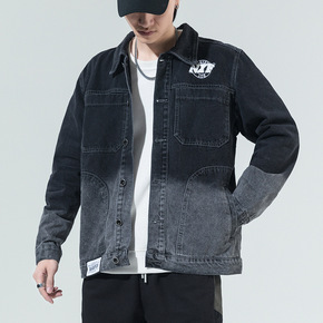 2022春秋新款拼接双色牛仔夹克男装跨境专供工厂现...