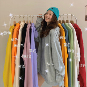 卫衣女秋冬加绒 纯色休闲学生韩版宽松简约情侣百搭连...
