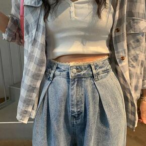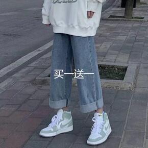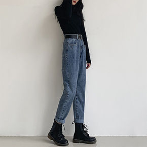 2022年新款高腰牛仔裤女韩版宽松学生显瘦百搭九分...