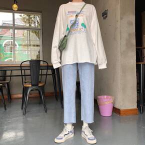 2021年春秋新品复古韩版百搭宽松简约休闲学院风牛...