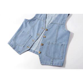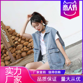 春夏季百搭牛仔马甲女短款宽松韩版BF无袖外套背心坎...