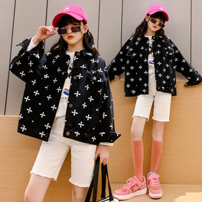 女童印花牛仔外套儿童短款夹克上衣韩版女孩宽松休闲复...