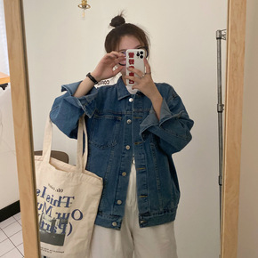 莉之绮 牛仔外套女长袖2021秋季新款蓝色宽松学生...